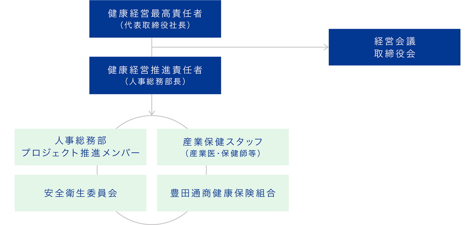豊通物流株式会社は「人間尊重」「共存共栄」の企業理念のもと社員の心身の健康を会社の一番の財産とし、社員が安心して働くことができる職場環境を築くことを宣言します。